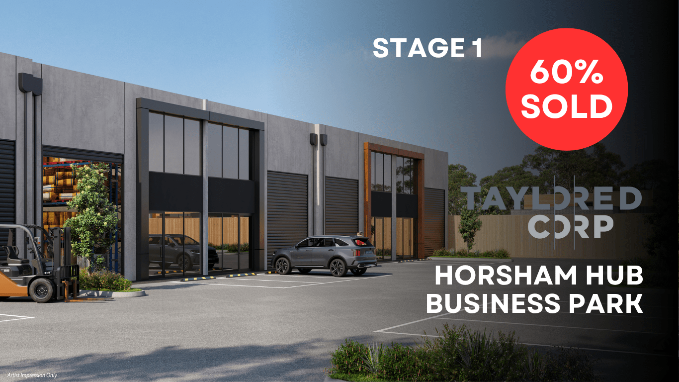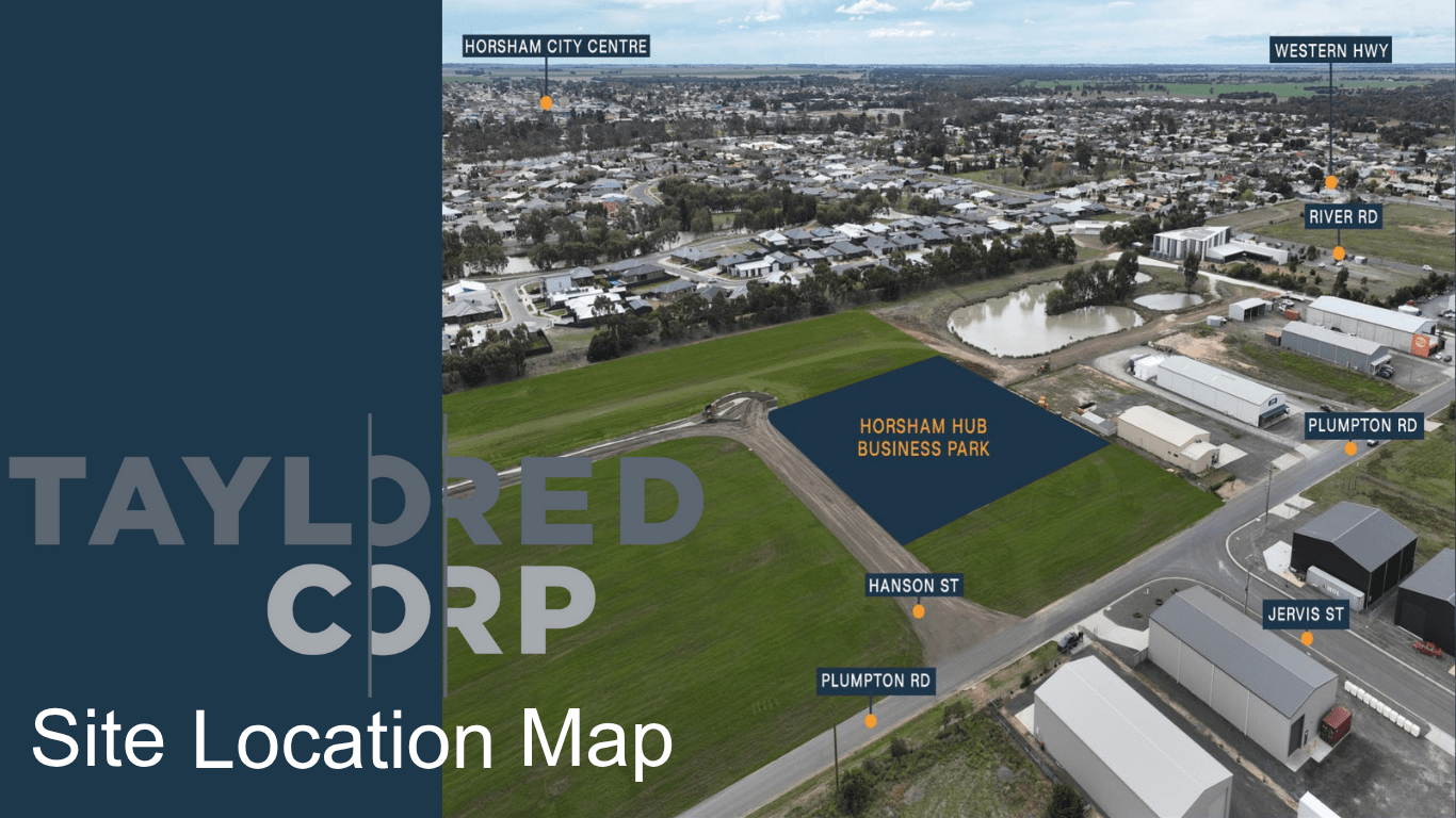 This exciting project introduces Horsham’s first architecturally designed business park, strategically located on Hanson Street, just off the southern township fringe, with direct access to the Western Highway, which makes it a prime location. The newly constructed Hanson Street has been constructed with wider lanes to accommodate B double trucks, enhancing freight logistics and accessibility. A concrete footpath wraps around the site increasing pedestrian access, while grassed nature strips with tree planting and street lighting contribute to the area’s overall appeal and usability.
